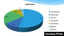 - Кыймылсыз мүлк сатып алууда, сатууда аялдардын укугу тебеленеби, жокпу деген изилдөө жүргүзүлдү. Бул жаатта кандайдыр бир деңгээлде дисбаланс сакталып келет. Кыймылсыз мүлктүн түрлөрүнө болгон укуктарды каттаганда кызыктуу жагдайларга туш болдук. Бишкекте үйлөр көбүнесе аялдарга катталган экен, республика боюнча алганда деле батирлер айымдарга катталыптыр. Ал эми калган турак үйлөр, жер тилкелердин басымдуу бөлүгү эркектердин атында экен.