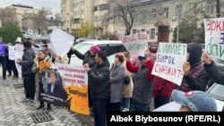 "Массалык башаламандык уюштурууга даярданды" деген шек менен камакка алынган активист Айбек Бузурманкулов менен саясатчы Клара Сооронкулованын жакындары Бишкек шаардык сотунун имаратынын алдына митингге чыкты.