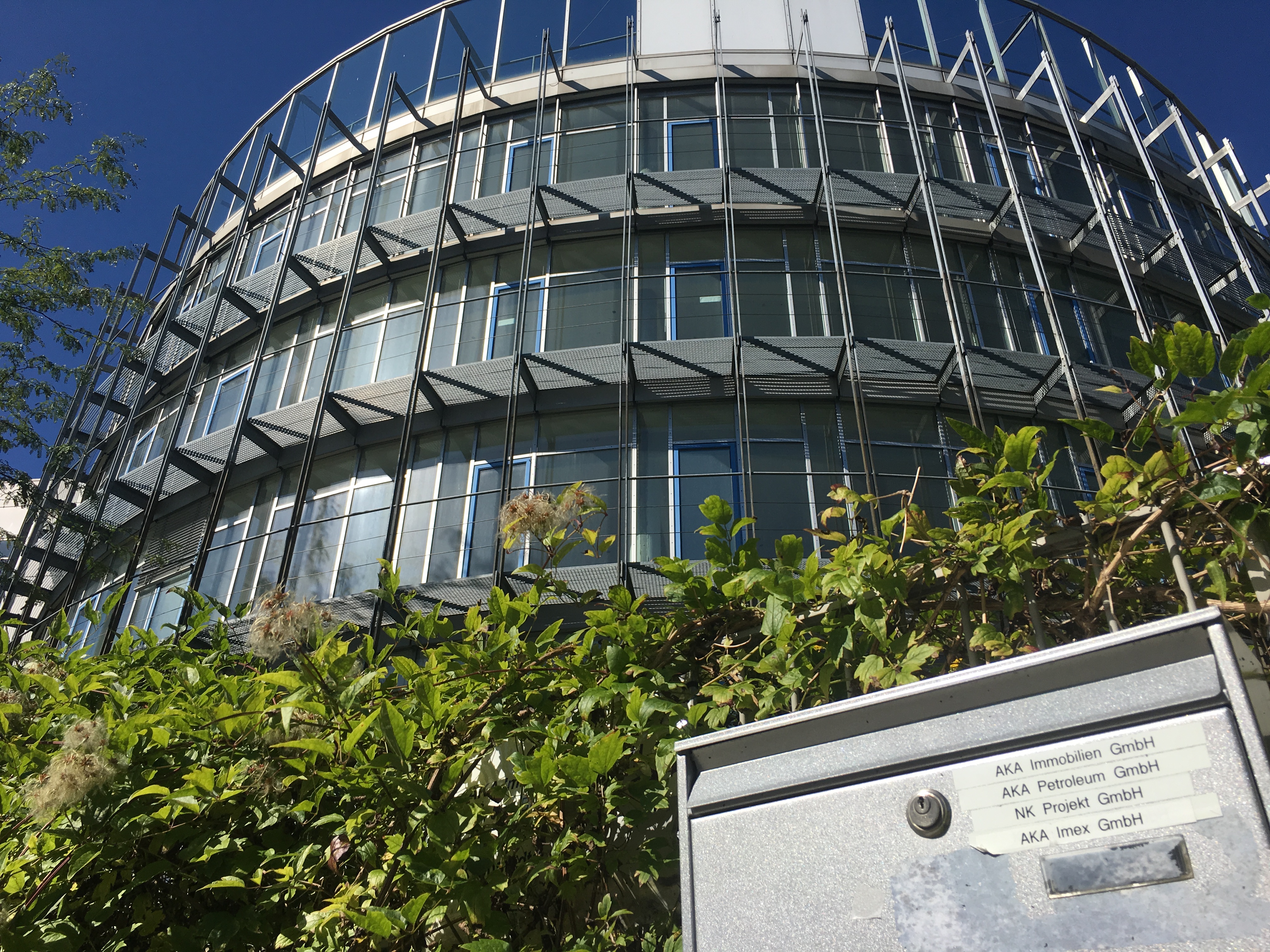Имараттын сыртындагы чакан почта кутусунда "AKA Immobilien", "AKA Petroleum" компанияларынын жана Абдукадыр түйүнүнө байланышы бар башка эки немис фирманын аттары кагазга жазылып чапталган. Имараттын кире беришиндеги айнек эшигине чапталган кагаздагы жазуу келген кишини көчөнүн арткы тарабындагы төрт компаниянын аты жазылган бизнес борборго багыттап турат. Журналисттер ал борбордун коңгуроосун басып көрүштү. Бирок жооп болгон жок.