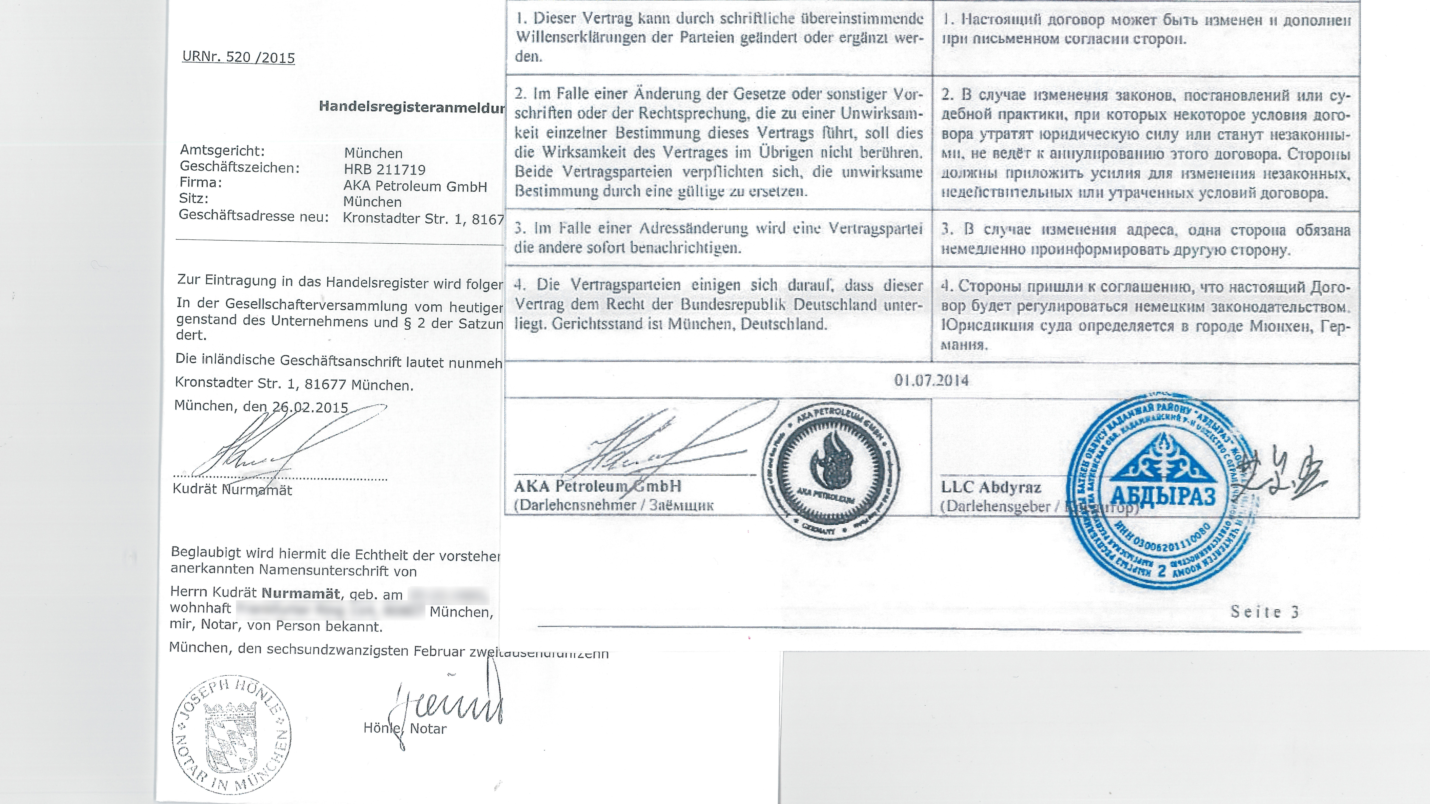Германиянын бизнес реестринен алынган Абдукадыр үй бүлөсүнүн компанияларынын бири тууралуу документте аталган үй бүлөнүн жергиликтүү өкүлү Кудрат Нурмаматтын колу бар.