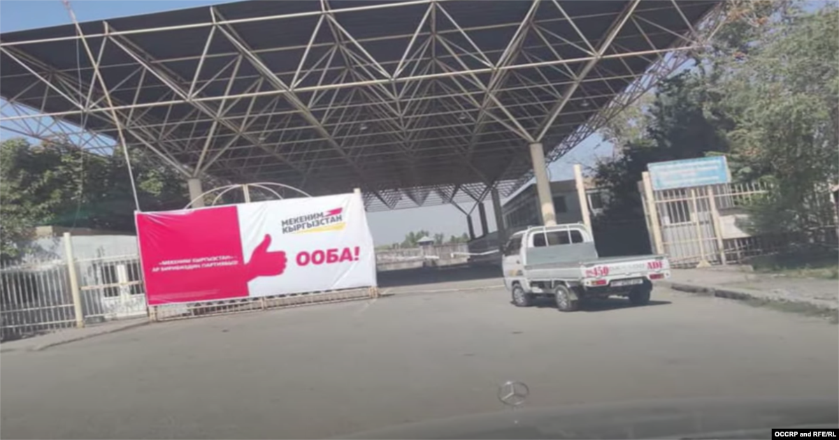 Мисалы, «Мекеним Кыргызстандын» жарнамасы чек ара бекетине жайгаштырылган. (Партия аны чек арачылар же бажычылар уурдап кетип орнотуп алышканын айтканы кабарланган).