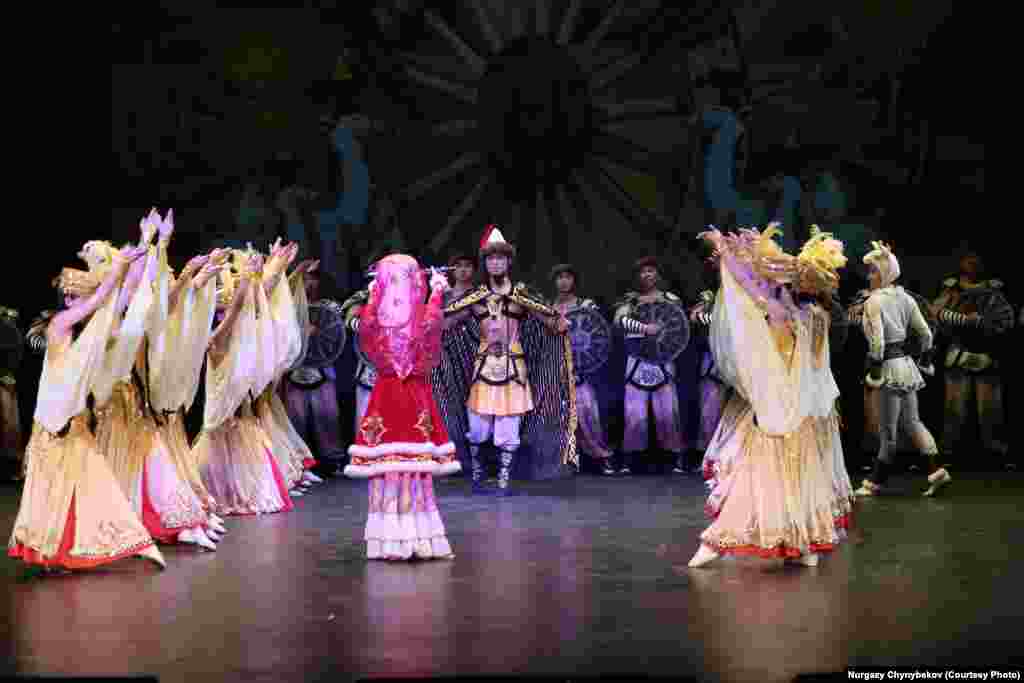 Кытайдын Цзянсу провинциясынын Уси шаарынын театры менен Шинжаң-Уйгур автономдуу районунун “Ахеч” бий ансамбли баатырдык эпосту көрүүчүлөргө эки жылдан бери тартуулап келет. Спектаклдин өзгөчөлүгү - анын ыр-бий менен коштолгонунда.